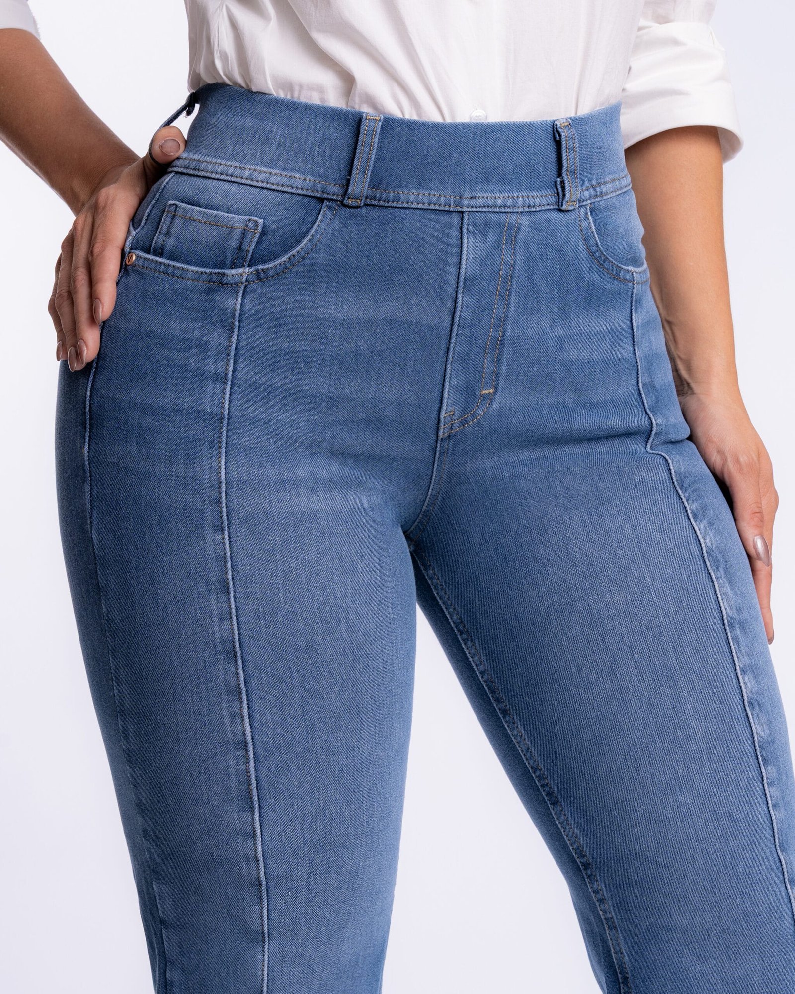 Confeccionados con tela premium de algodón stretch que estira en múltiples direcciones, nuestros jeans cintura alta están diseñados para abrazar tus curvas y darte la comodidad que necesitas a lo largo del día. Usamos tecnología VerachFlex para moldear tu cintura y acomodar rollitos traviesos. Todo lo que tienes que hacer es ponértelos, sin preocuparte de incómodos botones ni cierres. Tenemos los mejores PULL-ON jeans.