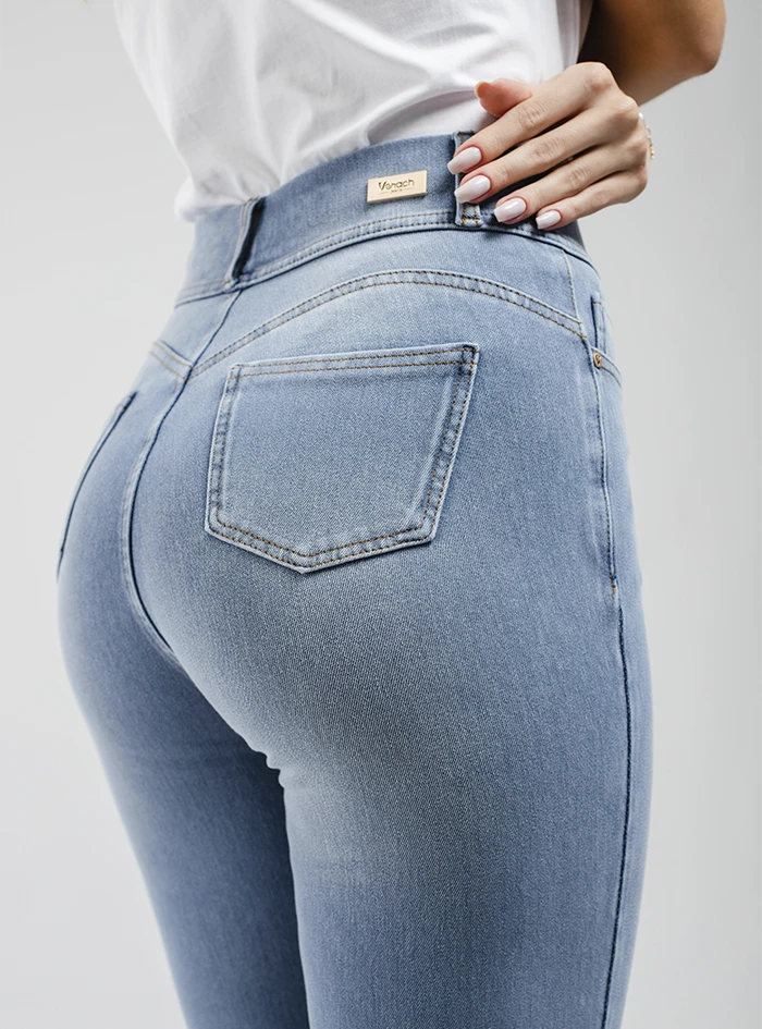 Confeccionados con tela premium de algodón stretch que estira en múltiples direcciones, nuestros jeans cintura alta están diseñados para abrazar tus curvas y darte la comodidad que necesitas a lo largo del día. Usamos tecnología VerachFlex para moldear tu cintura y acomodar rollitos traviesos. Todo lo que tienes que hacer es ponértelos, sin preocuparte de incómodos botones ni cierres. Tenemos los mejores PULL-ON jeans.