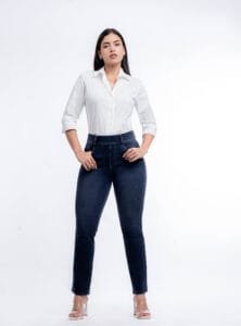 Confeccionados con tela premium de algodón stretch que estira en múltiples direcciones, nuestros jeans cintura alta están diseñados para abrazar tus curvas y darte la comodidad que necesitas a lo largo del día. Usamos tecnología VerachFlex para moldear tu cintura y acomodar rollitos traviesos. Todo lo que tienes que hacer es ponértelos, sin preocuparte de incómodos botones ni cierres. Tenemos los mejores PULL-ON jeans.